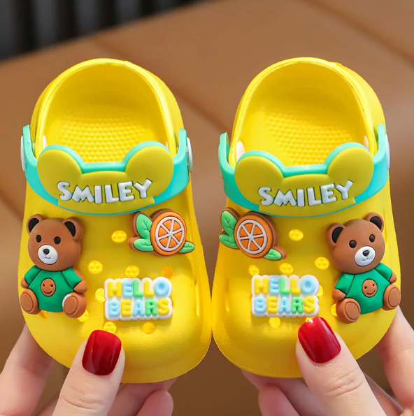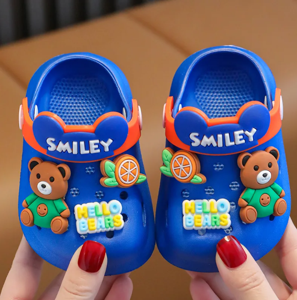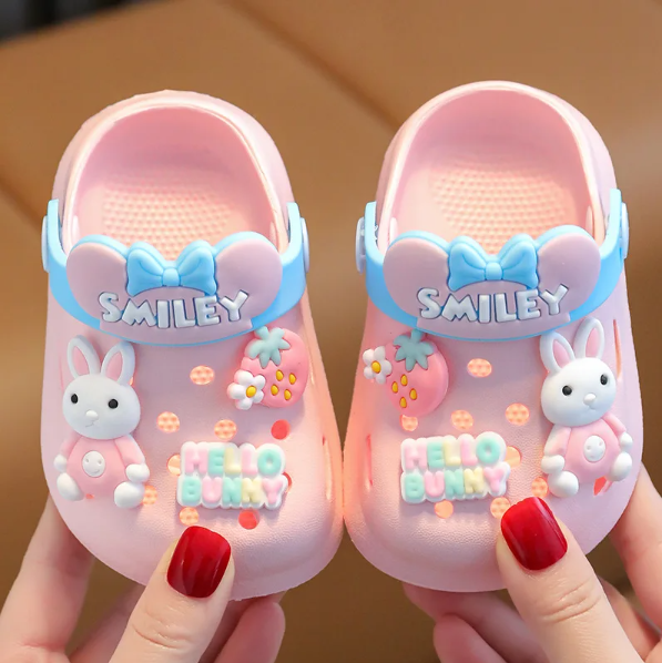 Sandálias e chinelos infantis para meninos e meninas no verão, sapatos infantis de tamanho pequeno e médio, sola macia, antiderrapante, desenho animado, sapatos infantis com buracos cobertos