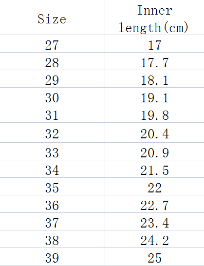 Tamanho: 27, 28, 29, 30, 31, 32, 33, 34, 35, 36, 37, 38, 39